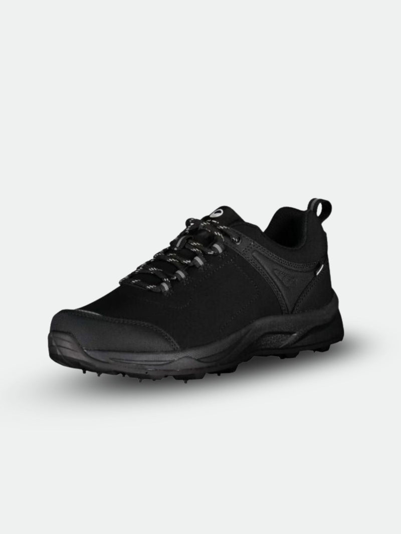 Lågskuren vattentät promenadsko med spikar i kolstål för perfekt grepp på isiga vägar. Vattentätt DrymaxX-membran som andas och håller fötterna torra och fräscha hela dagen.