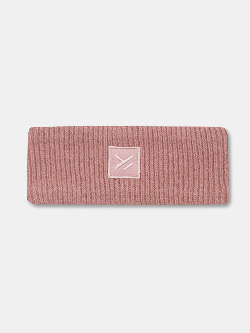 Halti Huurre Pannband är ett rosa ribbat pannband med en rektangulär patch och enkel design i frontlinjen.