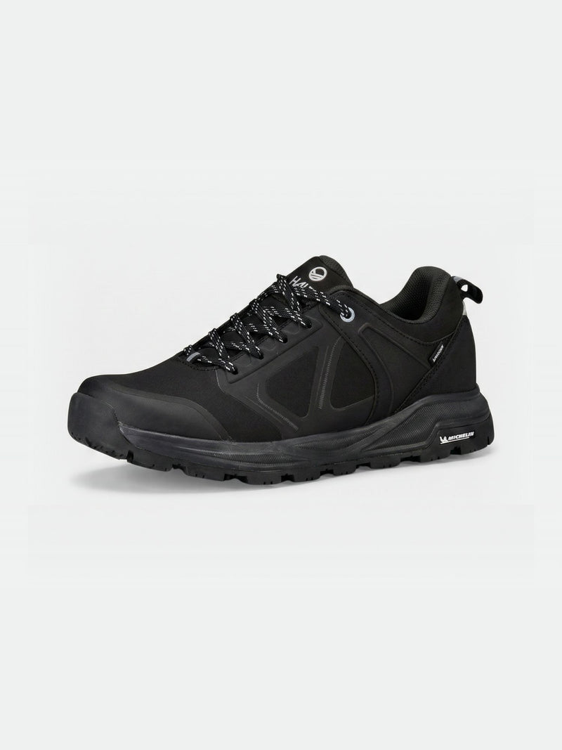 Vattentät lågskuren sko för utomhusbruk, tillverkad av återvunnet softshell-tyg med ny Halti Michelin Ice Control Friction-yttersula som ger utmärkt grepp på våta och isiga ytor. DrymaxX-membran med fuktavledande meshfoder håller fötterna torra i alla väder och reflekterande detaljer förbättrar synligheten i mörker. Perfekt för promenader och utomhusaktiviteter i stadsmiljöer, speciellt utformad för vatten, is, slask och andra hala ytor.