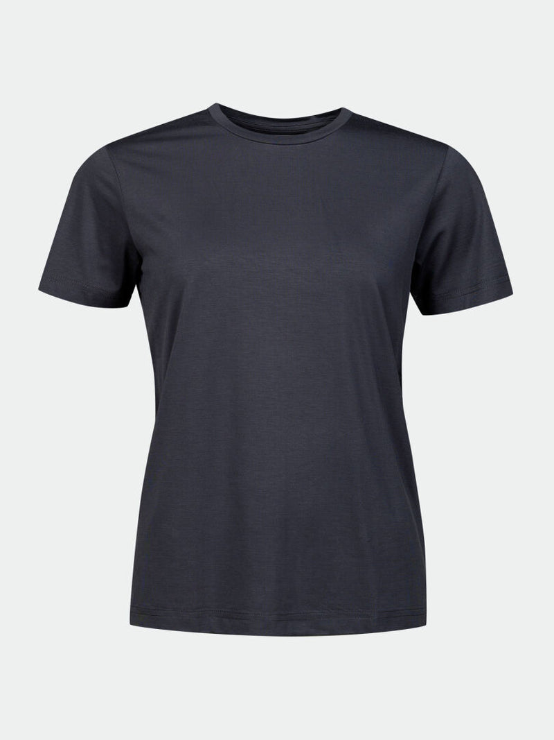 Kalteva T-Skjorta Dam från Halti är en svart t-shirt med rund hals och korta ärmar mot en ljusgrå bakgrund.