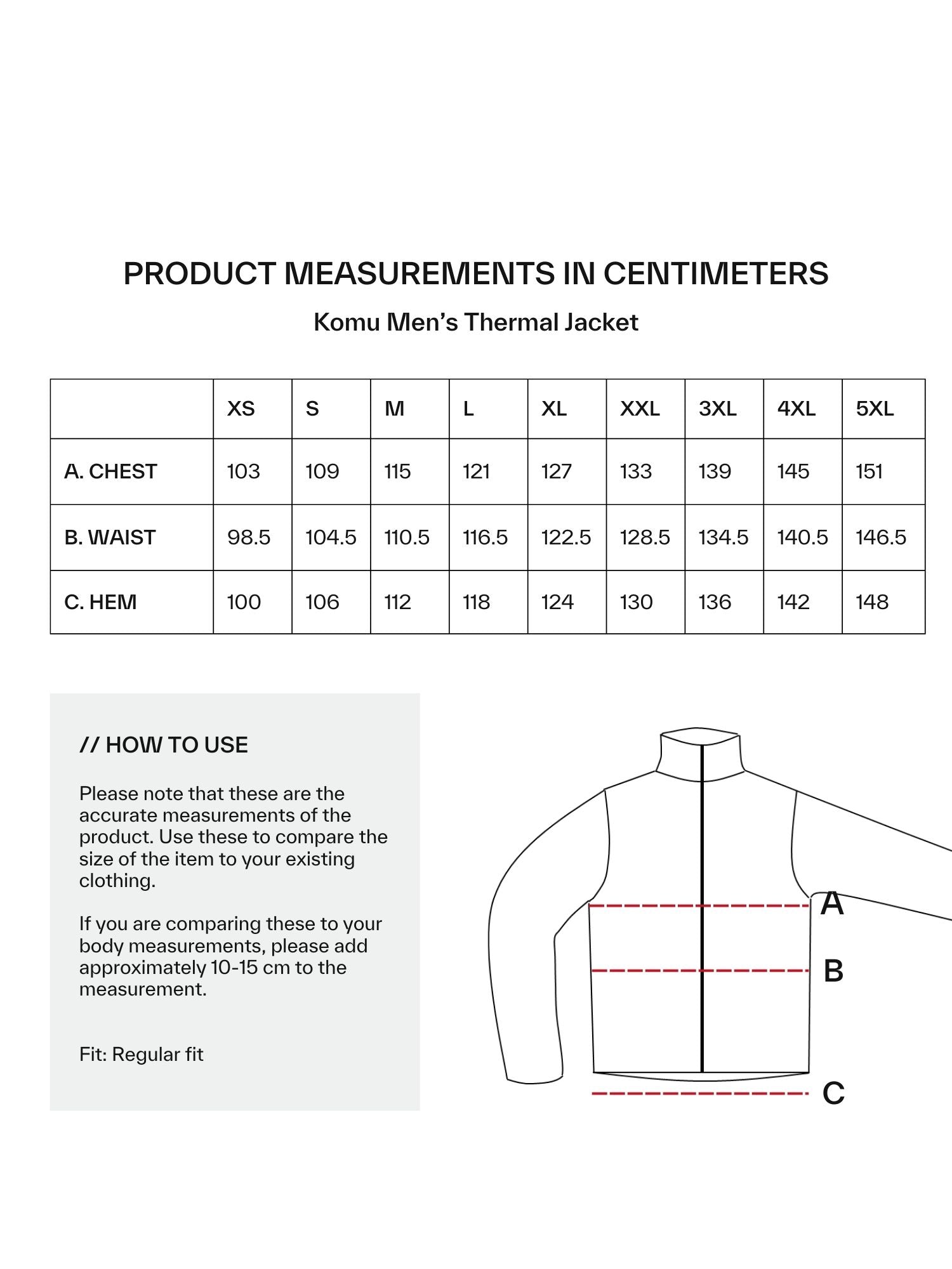 Komu Jackan har en normal passform. Vi rekommenderar att välja den storlek du vanligen använder för jackor.