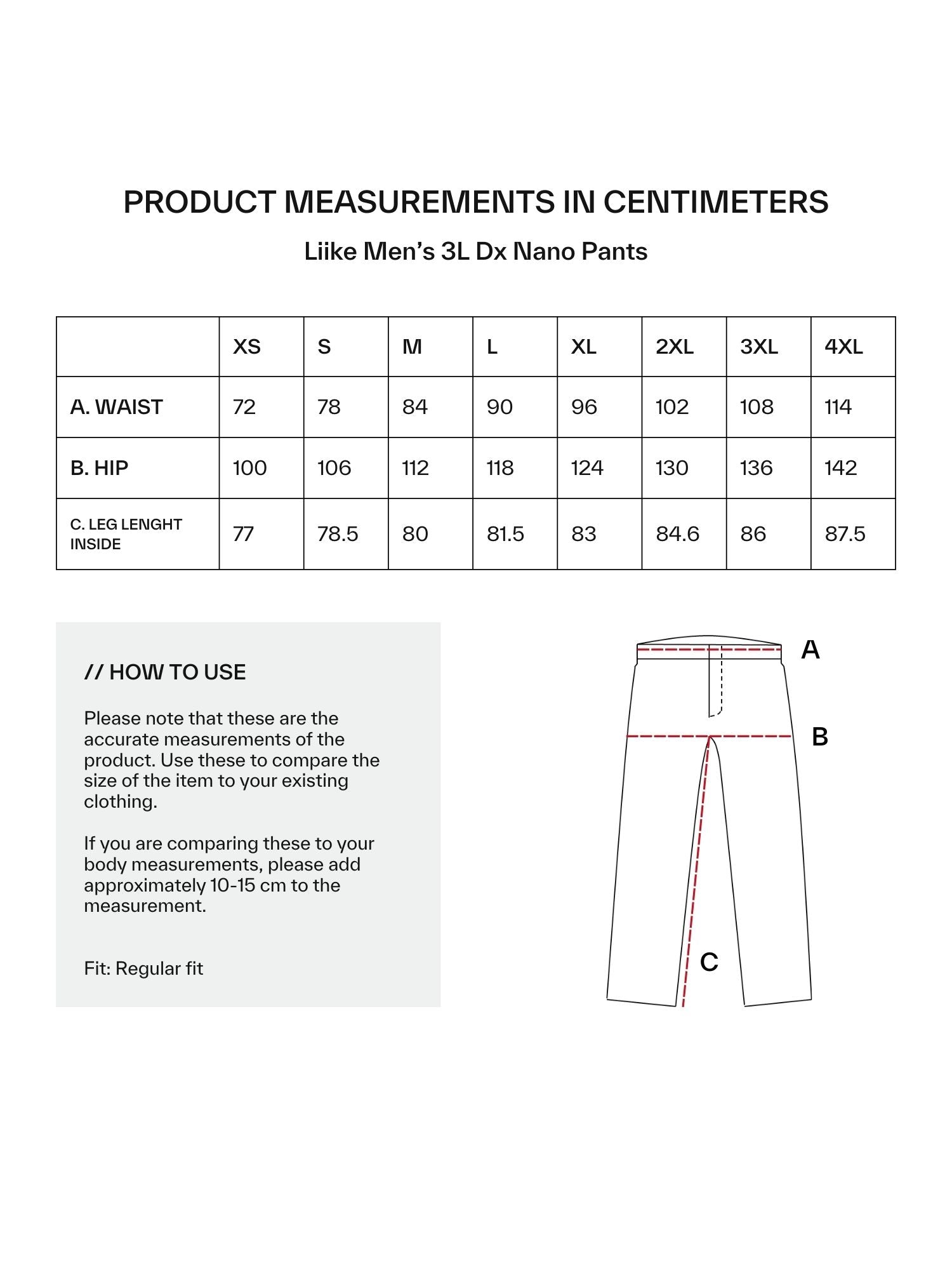 Liike 3L DrymaxX Nano-byxorna är ett bra val för cykling och annan aktiv utomhusträning. Superfunktionella och lätta med hög andningsförmåga, men samtidigt vind- och regntäta. De justerbara byxbenen hindrar tyget från att fastna i en cykelkedja eller röra sig i vinden.