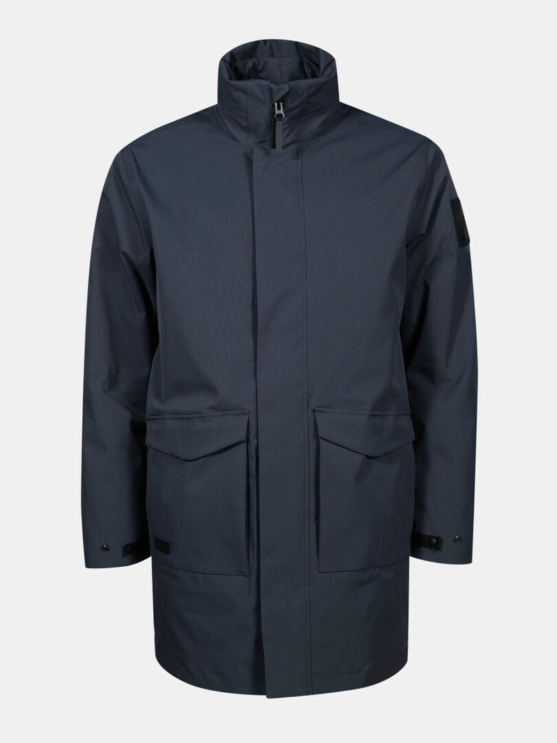 Halti Synkas II 3in1 DX Parka Herr i marinblått med hög krage, dragkedja fram, fickor med lock och knäppta ärmslut.