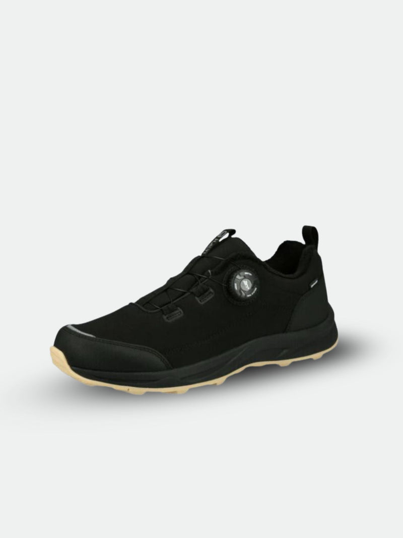 Vattentät och lågt skuren dubbsko med låg vikt och Freelock-säkerhetssnörning. Ovandelen är gjord i återvunnet Softshell-material tillverkat av PET-flaskor. Vattentätt DrymaxX-membran över textilfoder håller fötterna torra hela dagen.